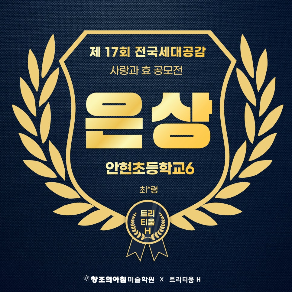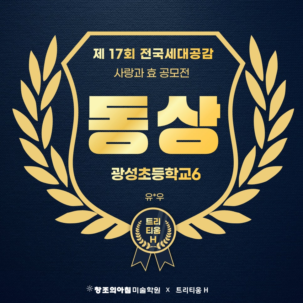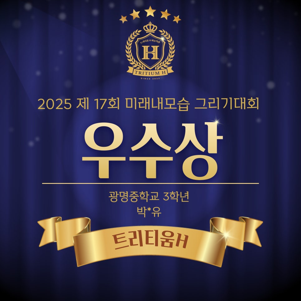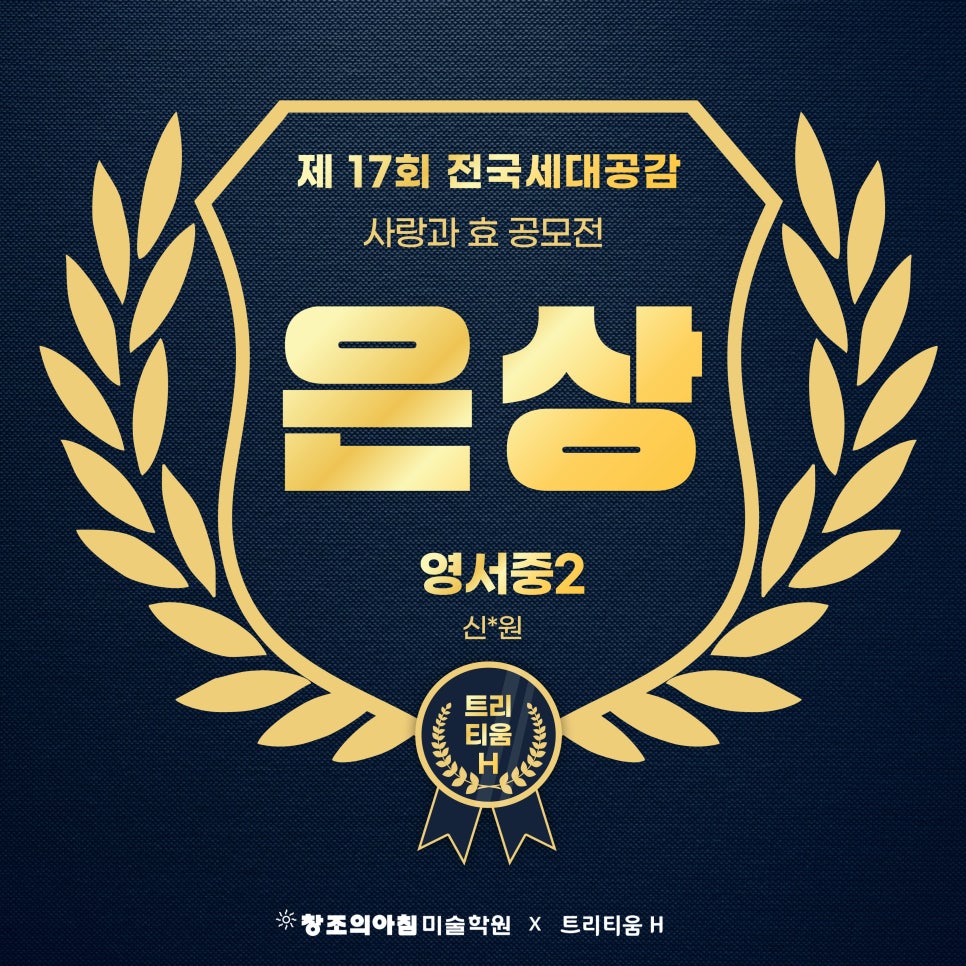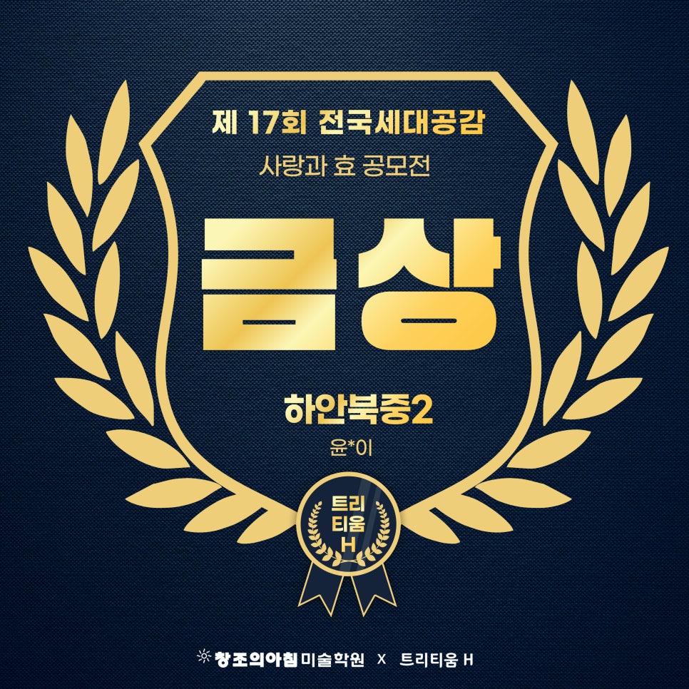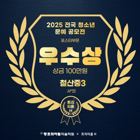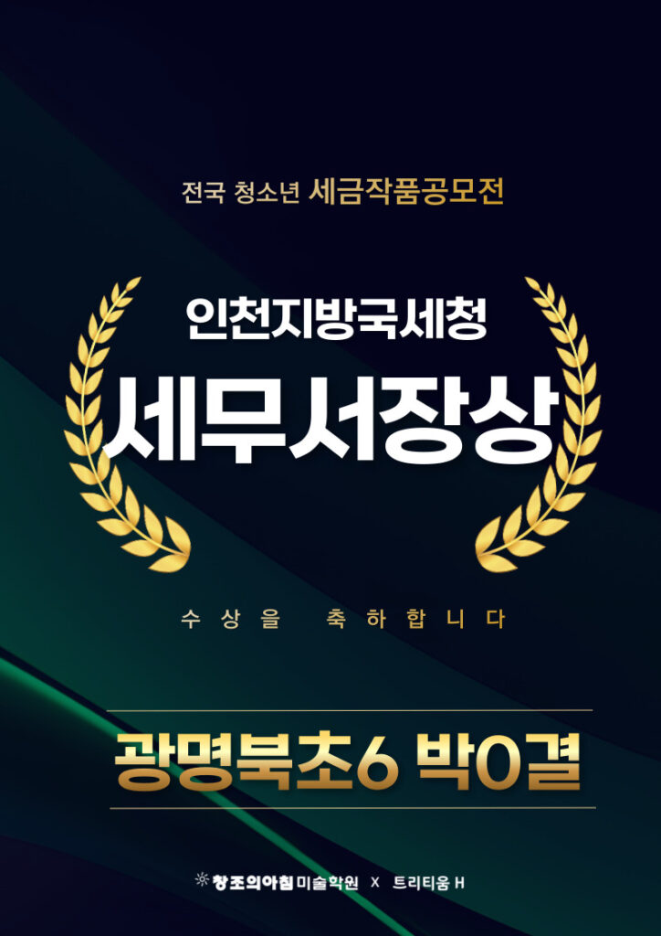 NOTICE 수상자&합격자 트리티움H미술학원 수상자&합격자 소식 결과로 증명하는 교육, 합격과 수상의 순간을 전합니다. 25년 전국 청소년 세금작품공모전 세무서장상 수상 2026-03-04 제17회 미래내모습 그리기대회 우수상 수상 2026-03-04 2025 전국청소년 문예공모전 캐릭터부문 우수상(상금100만원) 수상 2026-03-04 2025 전국청소년 문예공모전 포스터부문 우수상(상금100만원)수상 2026-03-04 제17회 전국세대공감 사랑과 효공모전 동상 수상 2026-03-04 제17회 전국세대공감 사랑과 효공모전 동상 수상 2026-03-04 제17회 전국세대공감 사랑과 효공모전 동상 수상 2026-03-04 제17회 전국세대공감 사랑과 효공모전 동상 수상 2026-03-04 제17회 전국세대공감 사랑과 효공모전 은상 수상 2026-03-04 제17회 전국세대공감 사랑과 효공모전 은상 수상 2026-03-04 제17회 전국세대공감 사랑과 효공모전 금상 수상 2026-03-04 2025 건축아이디어공모전 우수상 수상 2026-03-04 Previous Page1 Page2 Page3 Page4 Page5 Next